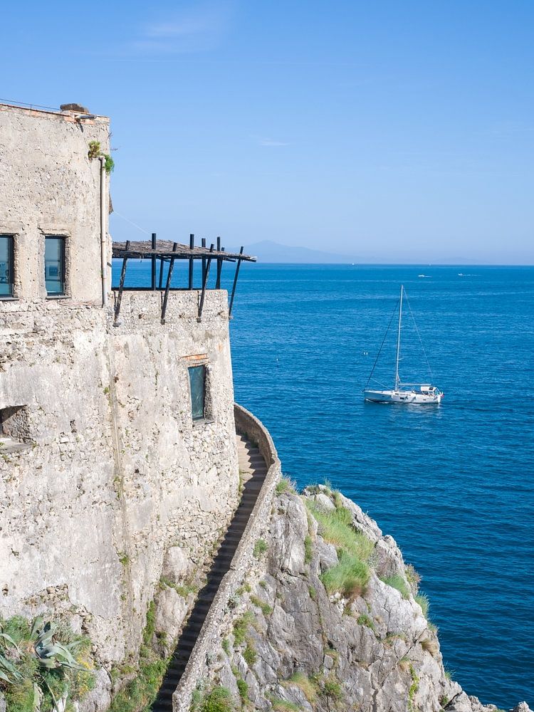 Amalfi is located in the middle of the Amalfi Coast and is a popular holiday resort in southern Italy. It is a town in the Italian region of Campania and the capital of the Amalfi Coast. The Amalfi Coast owes its name to this pretty town. The medieval watchtower Torre Saracena towers majestically high above the sea at the entrance to Amalfi. Today, the tower houses a popular restaurant.