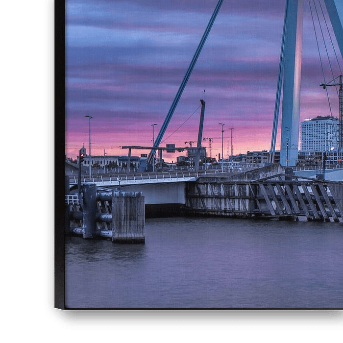 Cityscape with amazing sunset at Erasmus bridge Rotterdam and surrounding area.