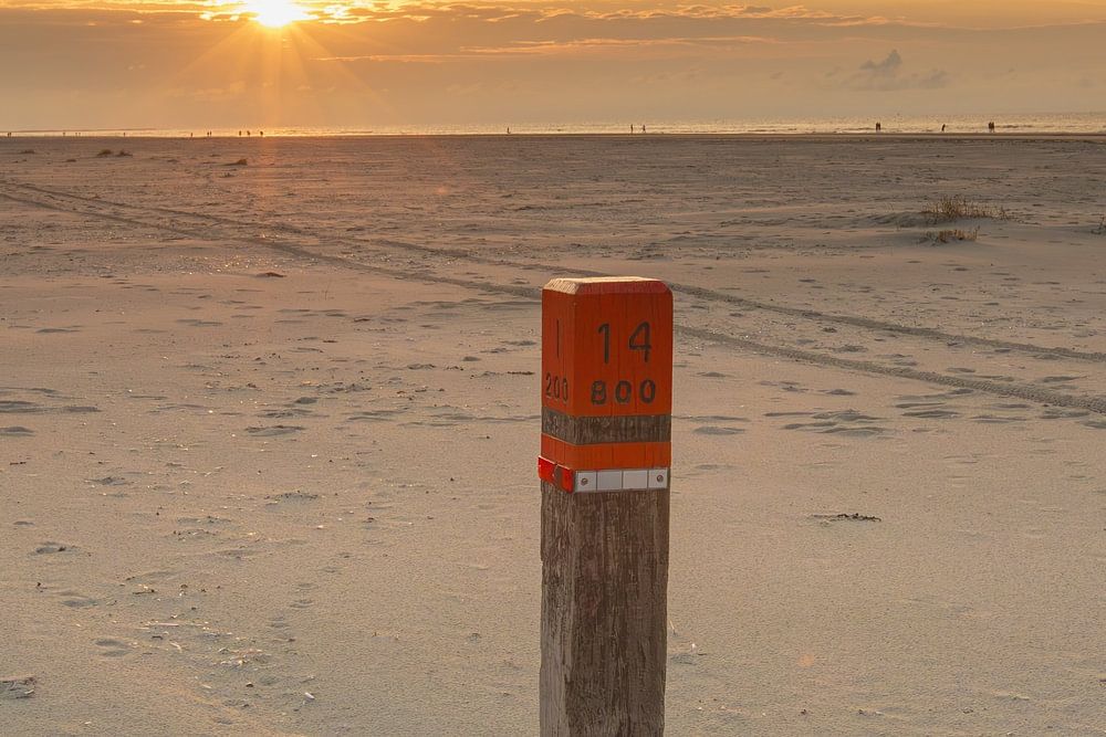 beach post 14 , on the beach of Ameland during sunset, you want this on your wall, as a reminder of your holiday on the Wadden island of Ameland