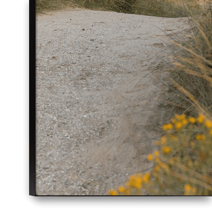 Buy this landscape artwork Ameland lighthouse with road through hilly dune landscape by Mayra Fotografie on canvas, ArtFrame, poster and wallpaper, printed on demand in high quality.