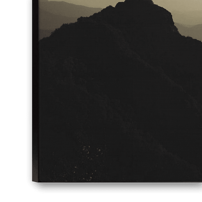 Buy this landscape artwork America - Mountains in the fog of Sequia National Park during sunset | California by Sanne Dost on canvas, ArtFrame, poster and wallpaper, printed on demand in high quality.