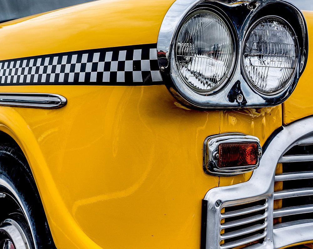 Classic American yellow taxi Yellow Cab as they drive around in New York