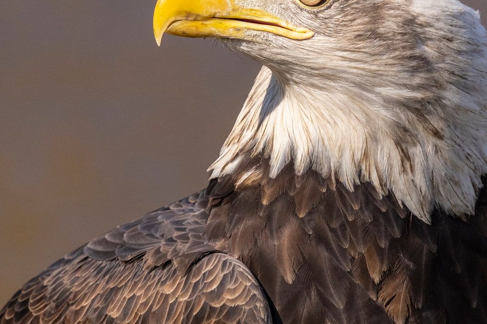 The American bald eagle or white-faced sea eagle (Haliaeetus leucocephalus) is a bird of prey that breeds in Canada and the United States. At the end of the twentieth century the bird was on the verge of extinction, but today the population has recovered to a stable level. The American bald eagle, unlike the African bald eagle, has a beak that is entirely yellow. The adult bird is entirely dark brown with a white head and tail.