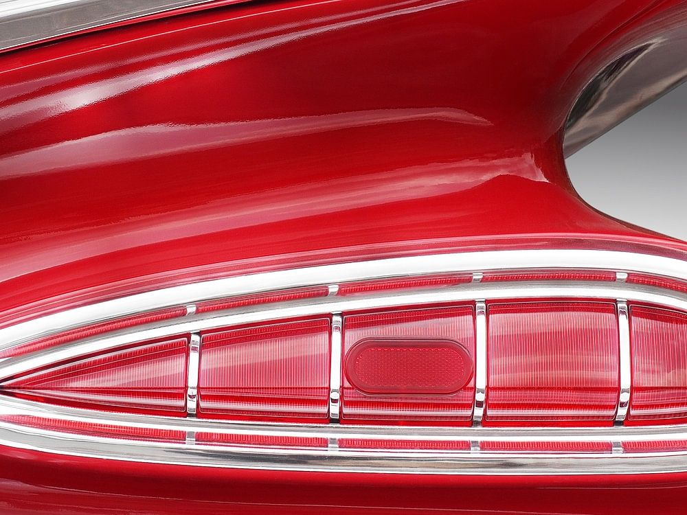The image shows you the rear of a fantastic American classic car from 1959. The focus is on some details of this spectacular automobile.