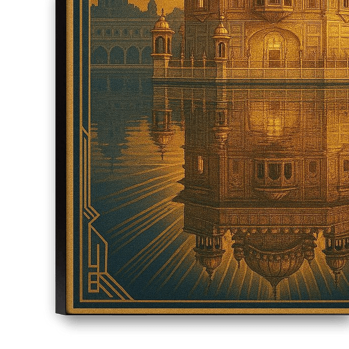 About ‘Amritsar Vintage Travel Poster – Golden Temple & Sacred Reflection Art’ by Travel Shop