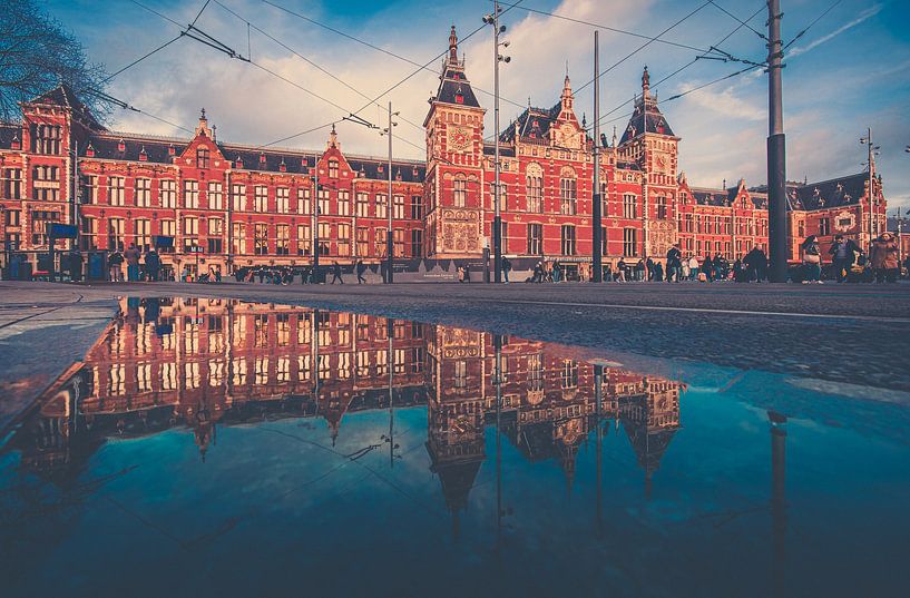 Buy the photo Amsterdam Central Station reflection by peterheinspictures on canvas, ArtFrame, poster and wallpaper, printed on demand in high quality.