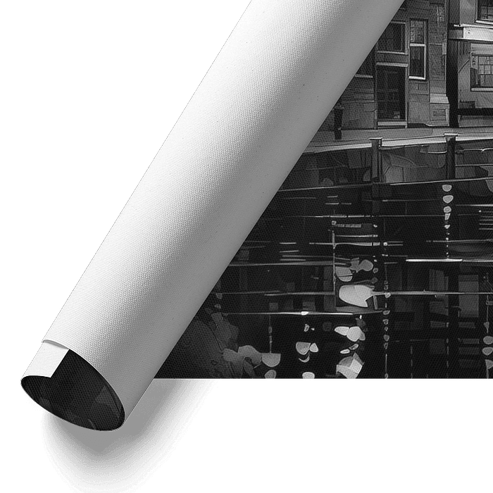 The use of black and white and fine details bring the city to life, creating a sense of nostalgia, depth and perspective. This painting is a beautiful representation of Amsterdam's historical heritage and invites the viewer to get carried away by the city's vibrant energy.