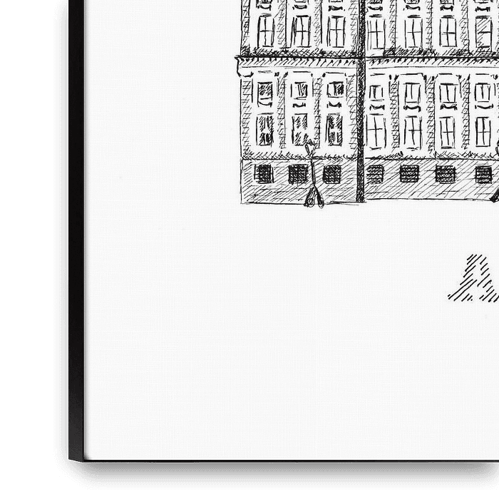 Marianne has always worked as a graphic designer. Because most of what she does nowadays is created by computer, she started to miss the drawing board more and more. Therefore, she has picked up illustrating with pen & ink again. By now she has drawn buildings in Amsterdam, but she also draws on commission; varying from private houses to so-called 'Levenslijnen' (life lines) (biographical drawings).
