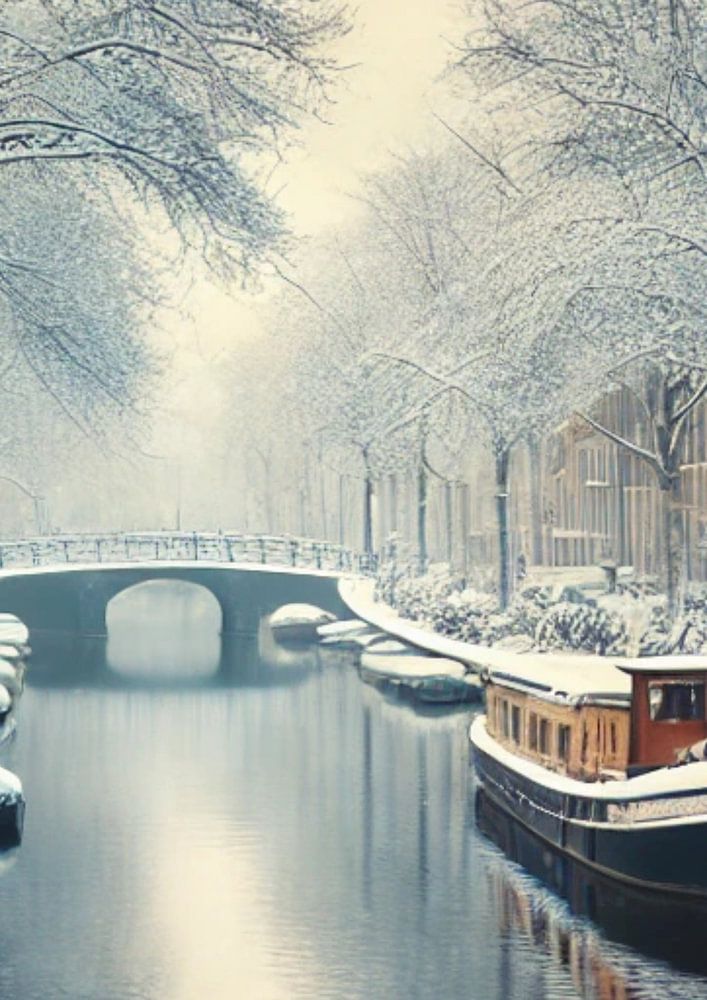 Buy this digital art artwork Amsterdam Snow scene canal! by Jaap Ros as a reproduction on canvas, ArtFrame, poster and wallpaper, printed on demand in high quality.