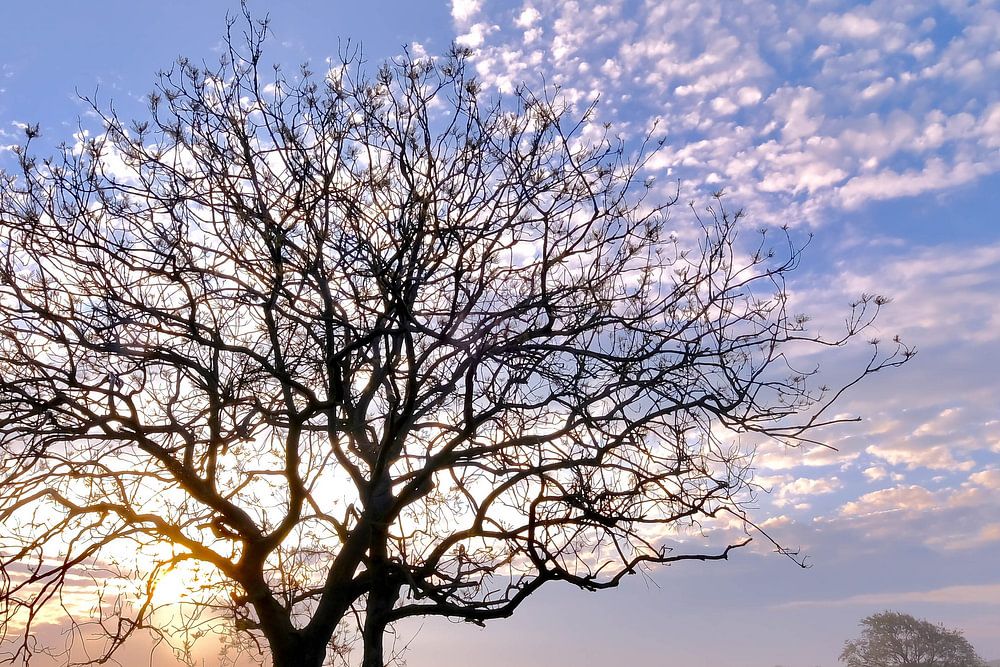 Tree in backlight on a foggy morning