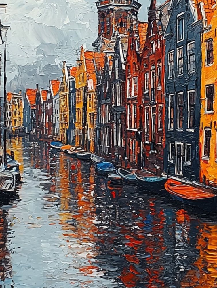 Buy this digital art artwork Amsterdam canal by Bianca Bakkenist as a reproduction on canvas, ArtFrame, poster and wallpaper, printed on demand in high quality.