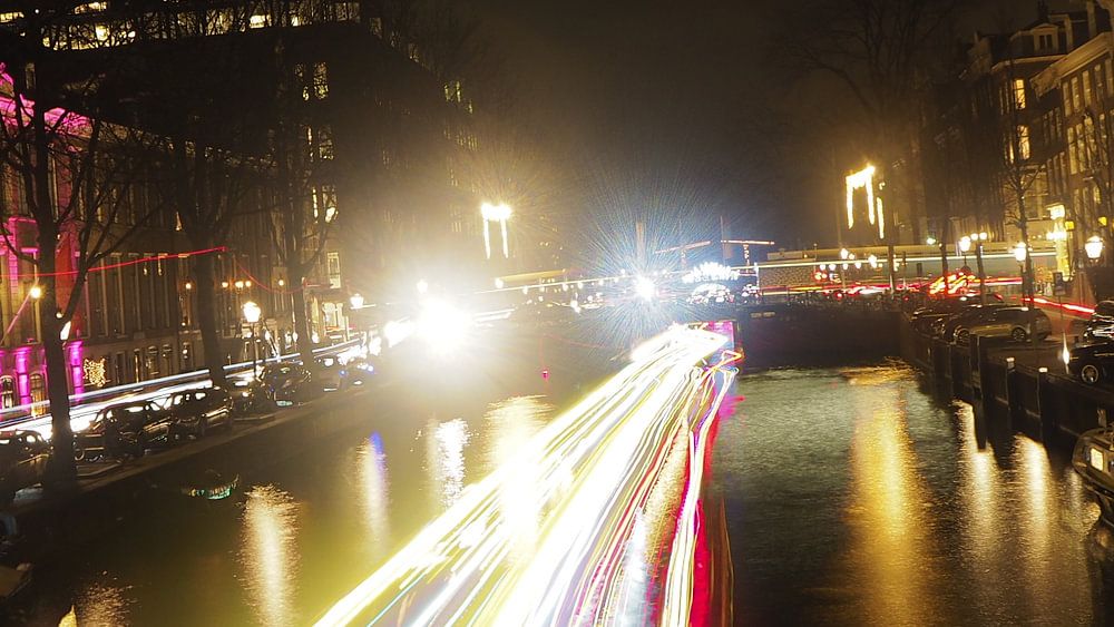 On Amsterdam's canals, you see hundreds of boats passing by. By playing with light, the canal looks like a motorway.