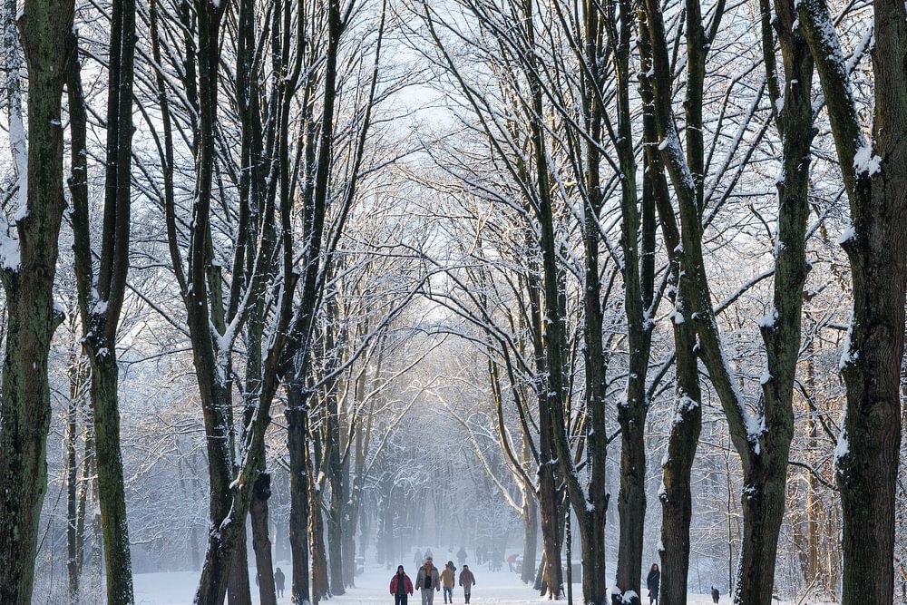 The Oude Karselaan entrance at the Amsterdamse Bos in winter. A beautiful snow shower had fallen and the light was just breaking through.