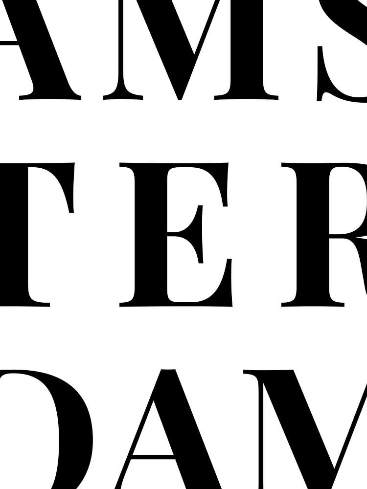 Timeless typography poster "AMSTERDAM" in white background, black text