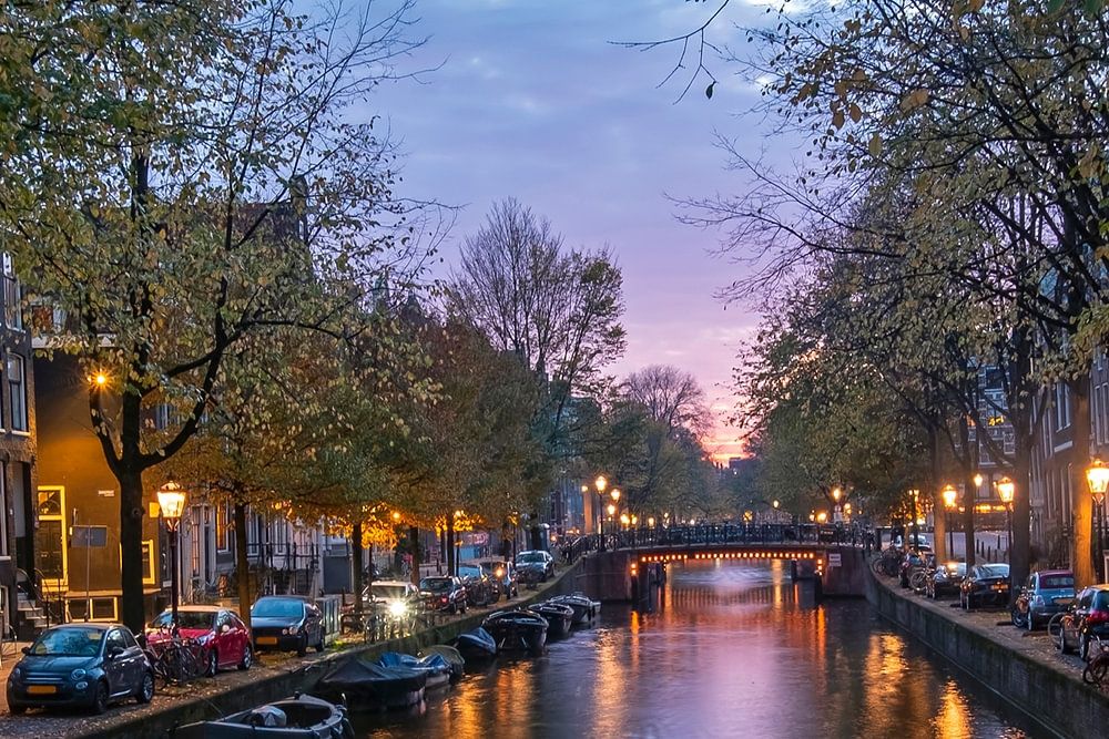 Amsterdam on the Keizersgracht at sunset in the Netherlands