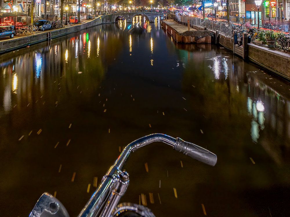 Evening photography in Amsterdam, old bicycle handlebars in the foreground does add something