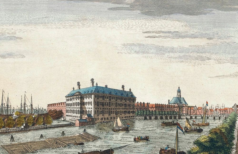 View of the Admiralty at Amsterdam, the warehouses, yards and docks belonging to it and to the East India Company of Holland, 1752