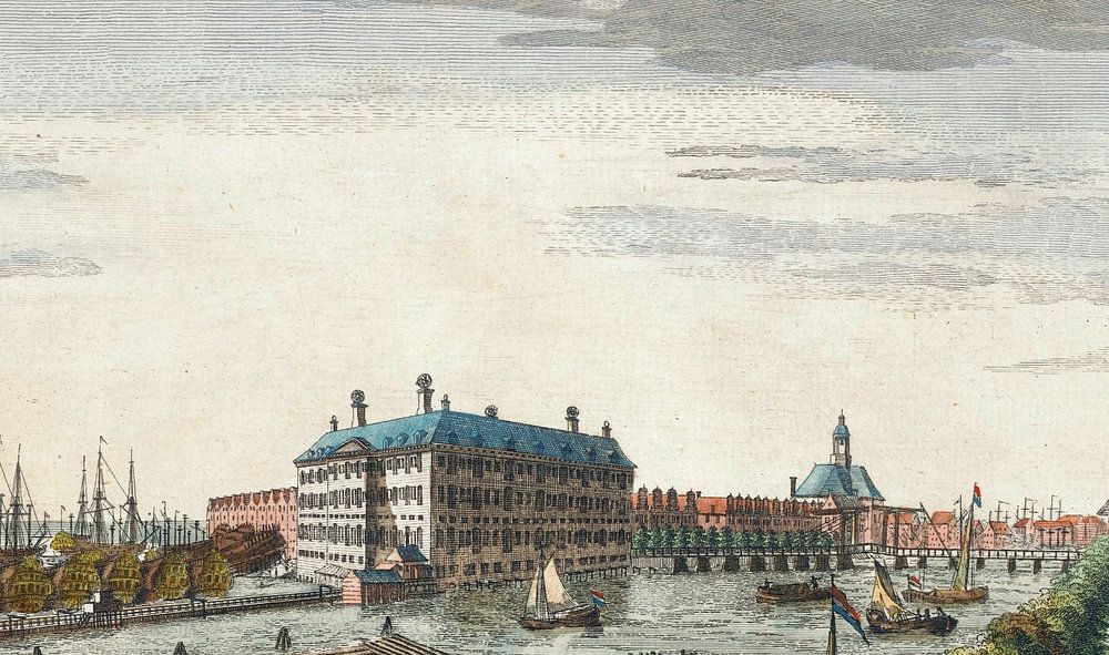 View of the Admiralty at Amsterdam, the warehouses, yards and docks belonging to it and to the East India Company of Holland, 1752
