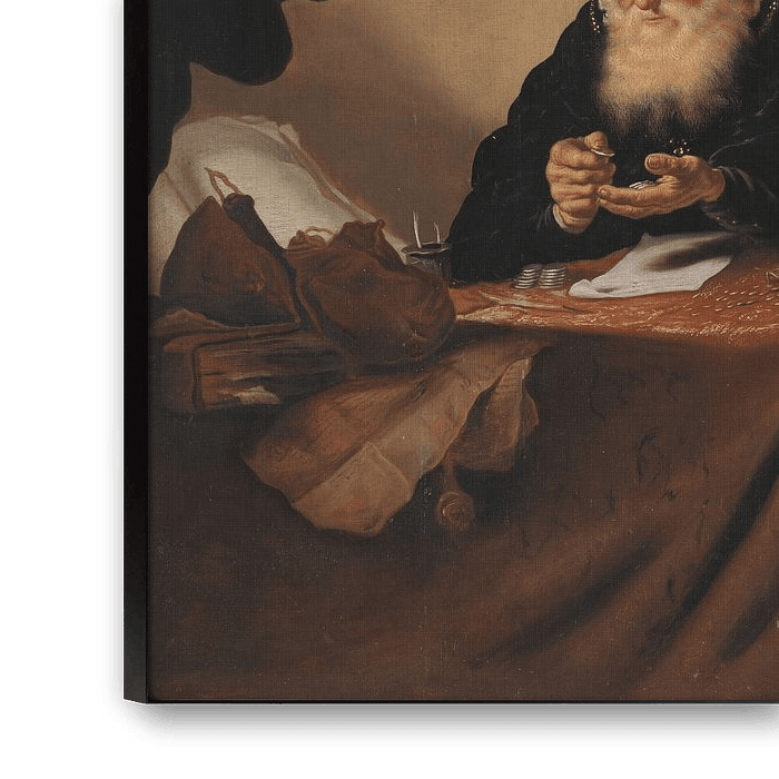 Buy An Old Man Counting his Money, Salomon Koninck as a reproduction on canvas, ArtFrame, poster and wallpaper, printed on demand in high quality.
