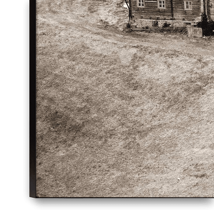 Buy this landscape artwork An alpine hut in Rauris in sepia by Christa Kramer on canvas, ArtFrame, poster and wallpaper, printed on demand in high quality.