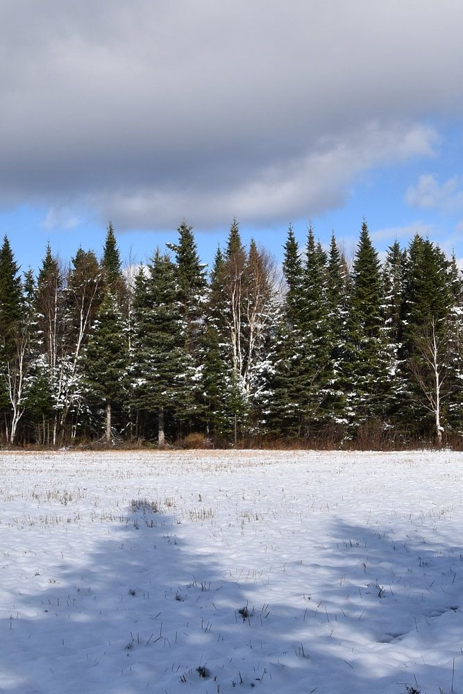 An area in winter under blue skies, Sainte-Apolline, Quebec, Canada