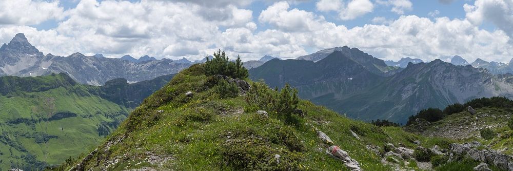 The Obertal valley unfolds before you in lush green, like a carpet of light and life. The Allgäu Alps stretch majestically towards the sky - with the striking crown of the Hochvogel, which at 2592 metres watches over the realm of the Rosszahn group. The shapes of the mountains are wild and harmonious at the same time, jagged and soft from afar - like verses written by the earth itself.