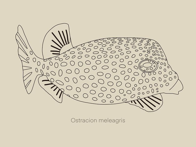 This is an illustration, a line drawing, of a white-spotted coffer fish. You will come across this cute fish when snorkelling or diving in warm waters