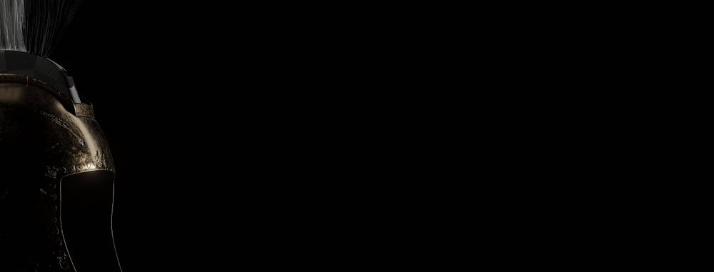 Ancient Illyrian helmet in low key light. 3D Rendering by Besa Art