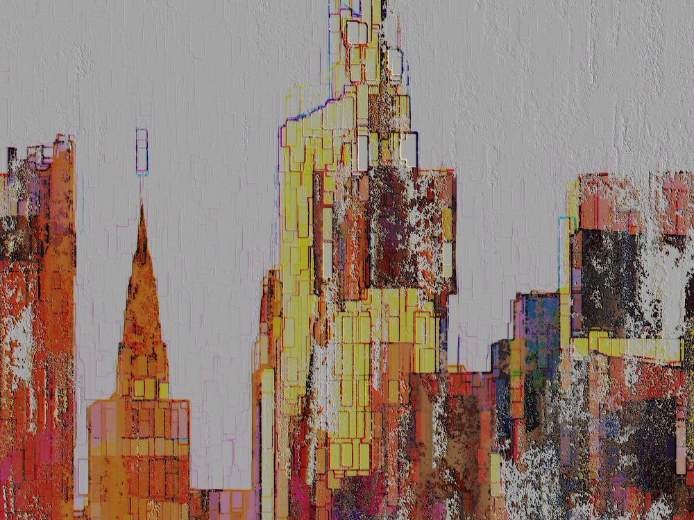 Let's build a city with tower blocks whose spires reach into the clouds. And we'll call this city Basel, because people talk in a vacuum, don't understand each other and talk through each other. I try to give mind-storms a place in the form of an (art) work. Art) work on the subject of urban landscape, the world, the Netherlands. Digital art. Expressionism. Abstracted. an impulsive expression on canvas. From an embossed off-white background, a city rises in warm colours. (Orange, yellow and red) The warm colours catch the eye immediately and give it something mysterious. Lines and coloured planes form the skyline. Abstracted artworks fit any wall. The relief adds an extra dimension.