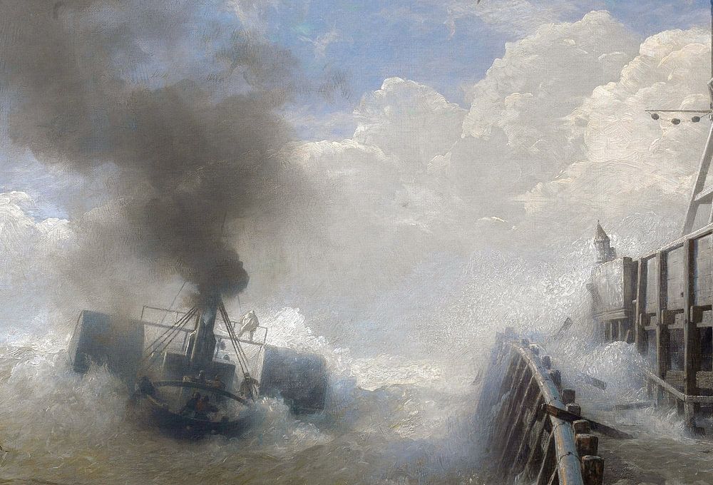 Andreas Achenbach,A tugboat leaving the port of Ostend