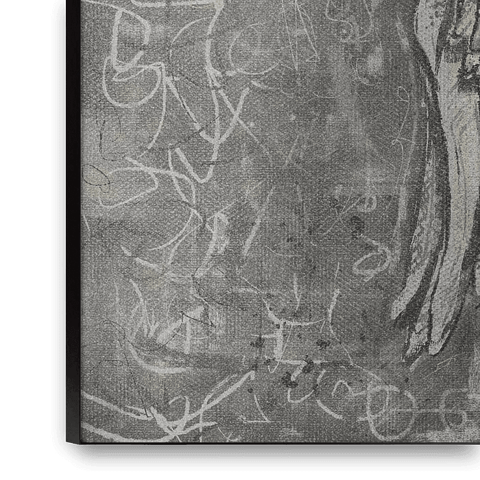 You can see on this artwork an angel holding a sledgehammer. The background of this drawing is made in different shades of gray. The work has a canvas texture look giving it a soft look.