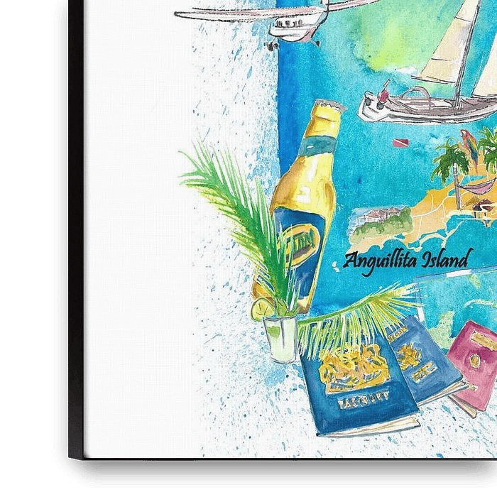 Buy Anguilla Antilles Illustrated Caribbean Travel Map with Highlights of the West Indies Dream by Markus Bleichner on canvas, ArtFrame, poster and wallpaper, printed on demand in high quality.