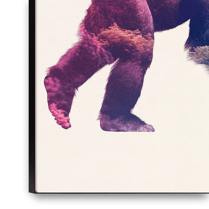 A majestic gorilla, whose silhouette is interspersed with vivid colours and an enchanting natural backdrop, passes by in powerful elegance. The harmonious combination of animal and landscape conveys a sense of freedom and adventure. This work of art is perfect for the living room, where it will stimulate conversation and inspire the…