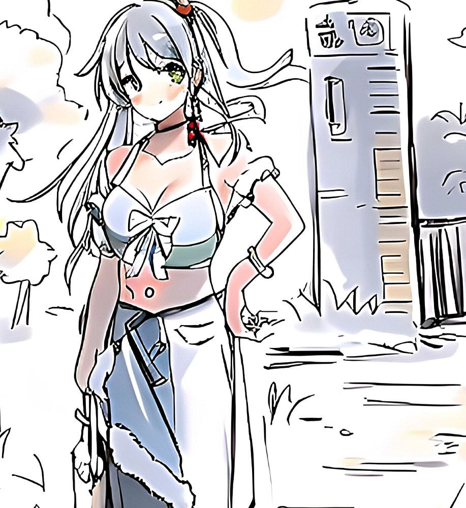 Op dit werk zie je een jonge vrouw op een stoep lopen. Dit werk heeft grijze en zacht gele accenten en heef een licht karakter. Deze illustratie is gemaakt in de anime stijl.