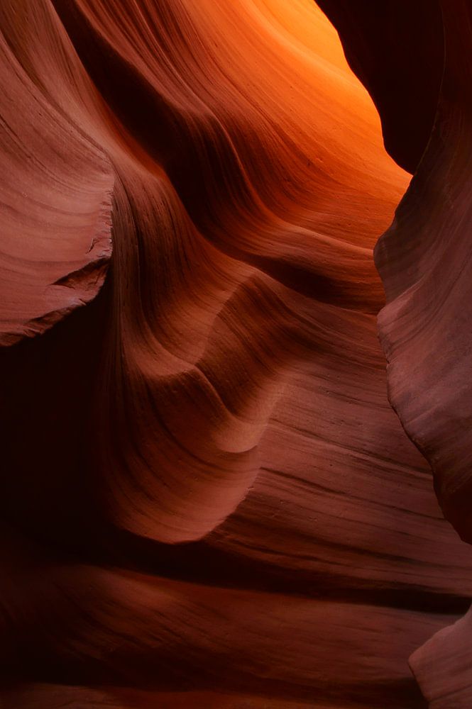 In Page Arizona USA you can find these orange slot canyons. They are part of the Lower Antelope Canyons. Because of the sun shining in the canyon the walls color beautiful orange and red. A spectacle to walk through and take pictures.
