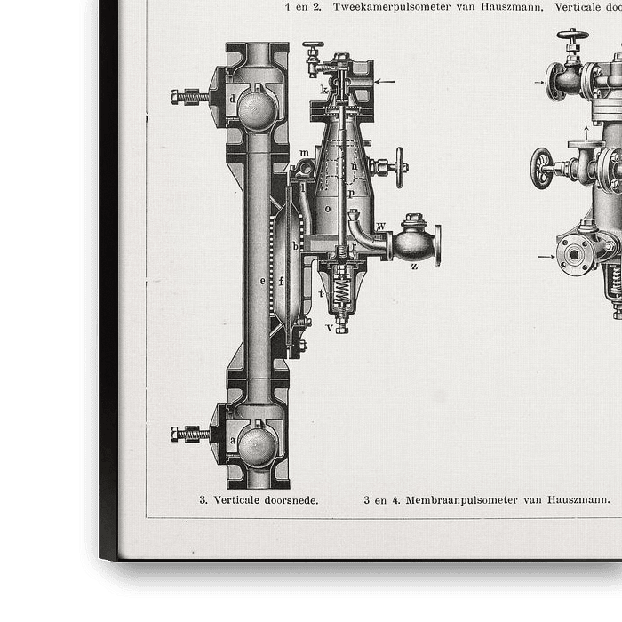 This image in black and white shows a schematic representation of a number of pulsometers. A pulsometer (pump) is a suction and discharge pump without pistons, in which water is sucked up by the air slurry created by the condensation of steam and squeezed out by the instantaneous pressure of steam on the surface of the water inside the pump.