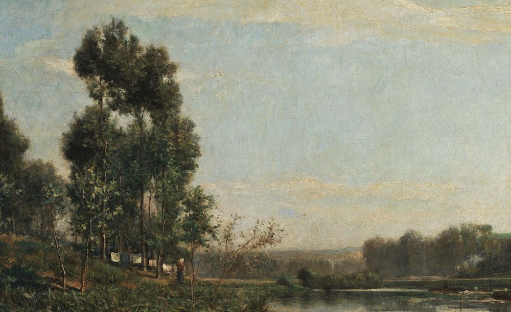 António Carvalho de Silva Porto~Morning view of the banks of the Oise in Auvers