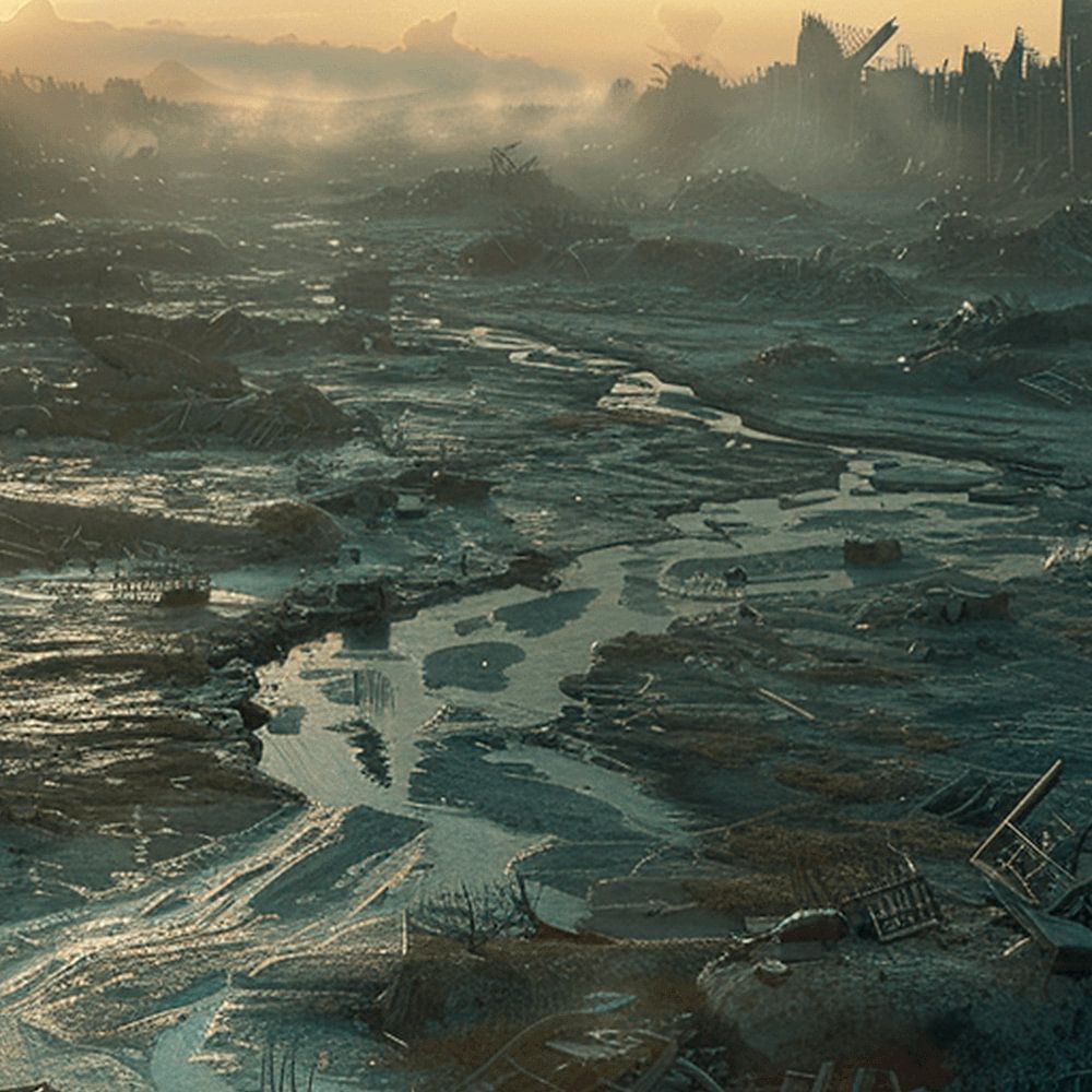 A_depiction_of_a_post-apocalyptic_wasteland_at_sunrise