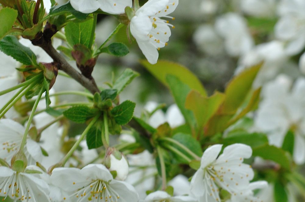 The white flowers of apple blossoms in spring