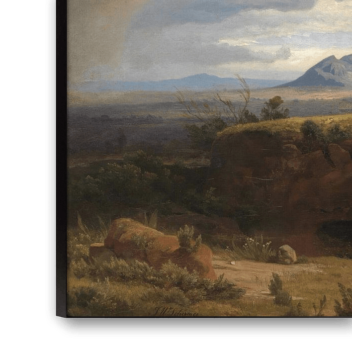 Buy Approaching Thunderstorm in the Roman Campagna, Johann Wilhelm Schirmer as a reproduction on canvas, ArtFrame, poster and wallpaper, printed on demand in high quality.