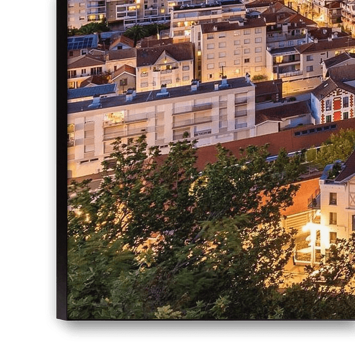 View from Observatoire Ste-Cécile over the town of Arcachon and the Bay of Arcachon at night, Aquitaine, New Aquitaine, France.