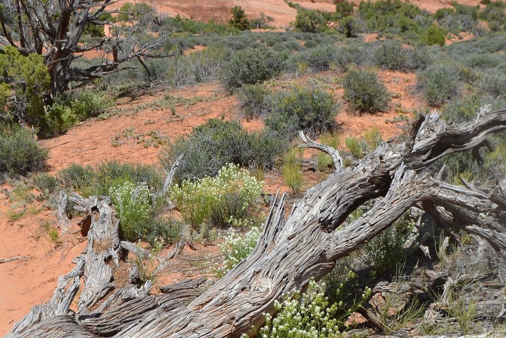Dead trees in Arches National Park, Utah, America. The trees have no time to rot because of the drought.