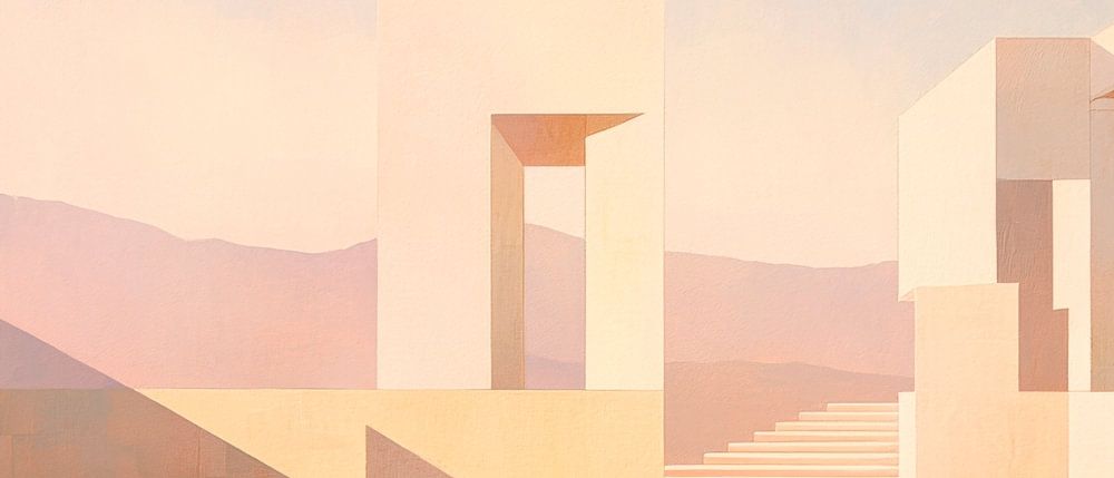 A touch of history and architecture unfolds here in soft earthy tones and clear shapes. Majestic columns and geometric structures lend the room a timeless elegance, while soft light glides harmoniously over the surface. Ideal for the living room, where it stimulates conversation and radiates calm at the same time.