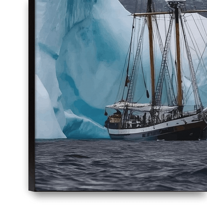 Embark on an arctic adventure and explore the icy wonders of the world. This captivating image captures the beauty and majesty of an iceberg archway, with a sailboat sailing through its center.