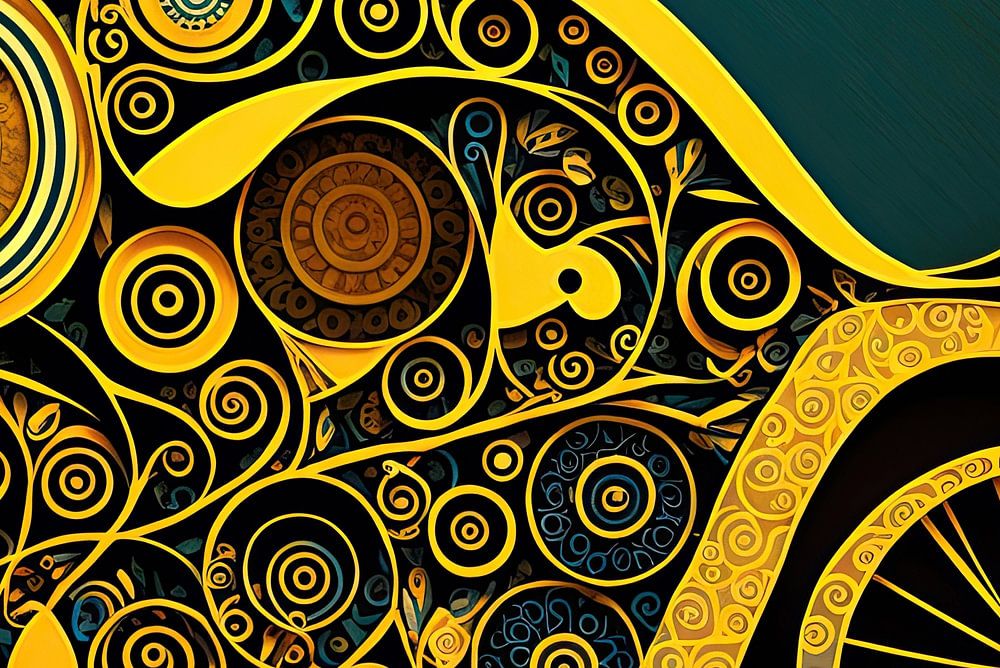 An inspiring journey by bike through the seasons, encouraging the viewer to be active and enjoy life on two wheels. The abstract illustration was conceived with artificial intelligence and modified and optimised with Photoshop.