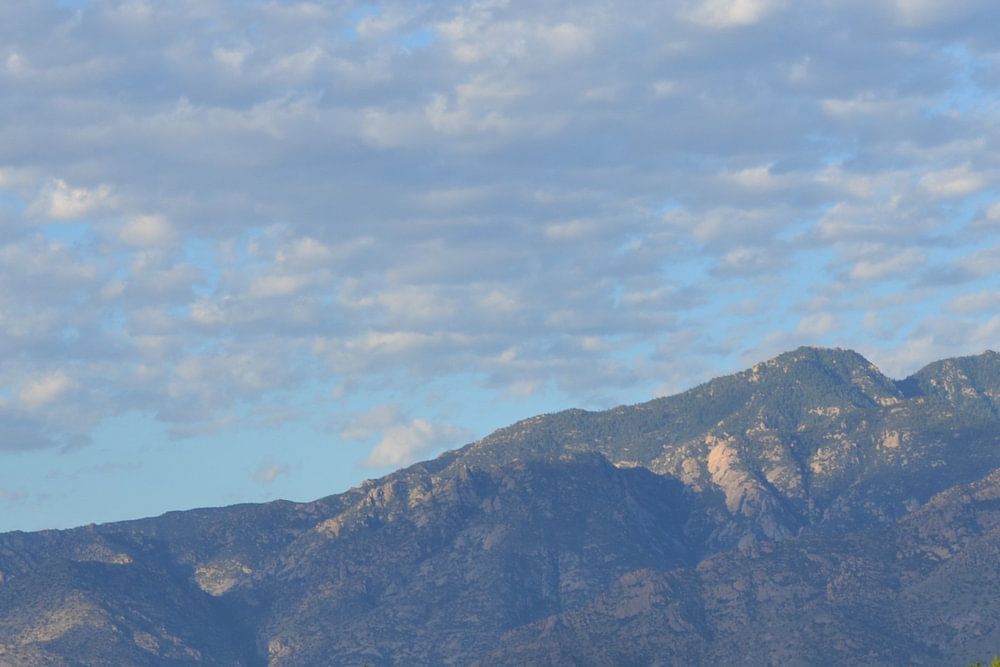 In the desert of Arizona in the early morning. In the background the Pinaleno Mountains. The highest point is Mount Graham
