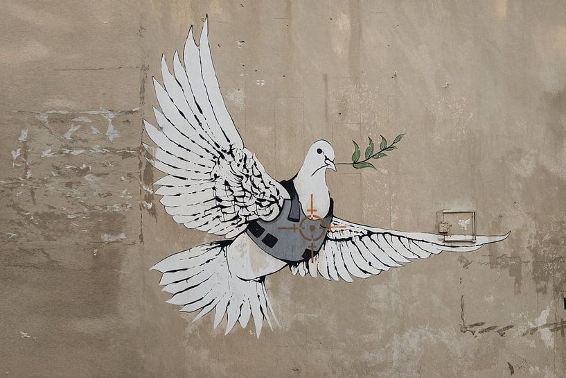 Buy the photo 'Armoured Dove' by Banksy in Bethlehem, Palestine by Sander J on canvas, ArtFrame, poster and wallpaper, printed on demand in high quality.