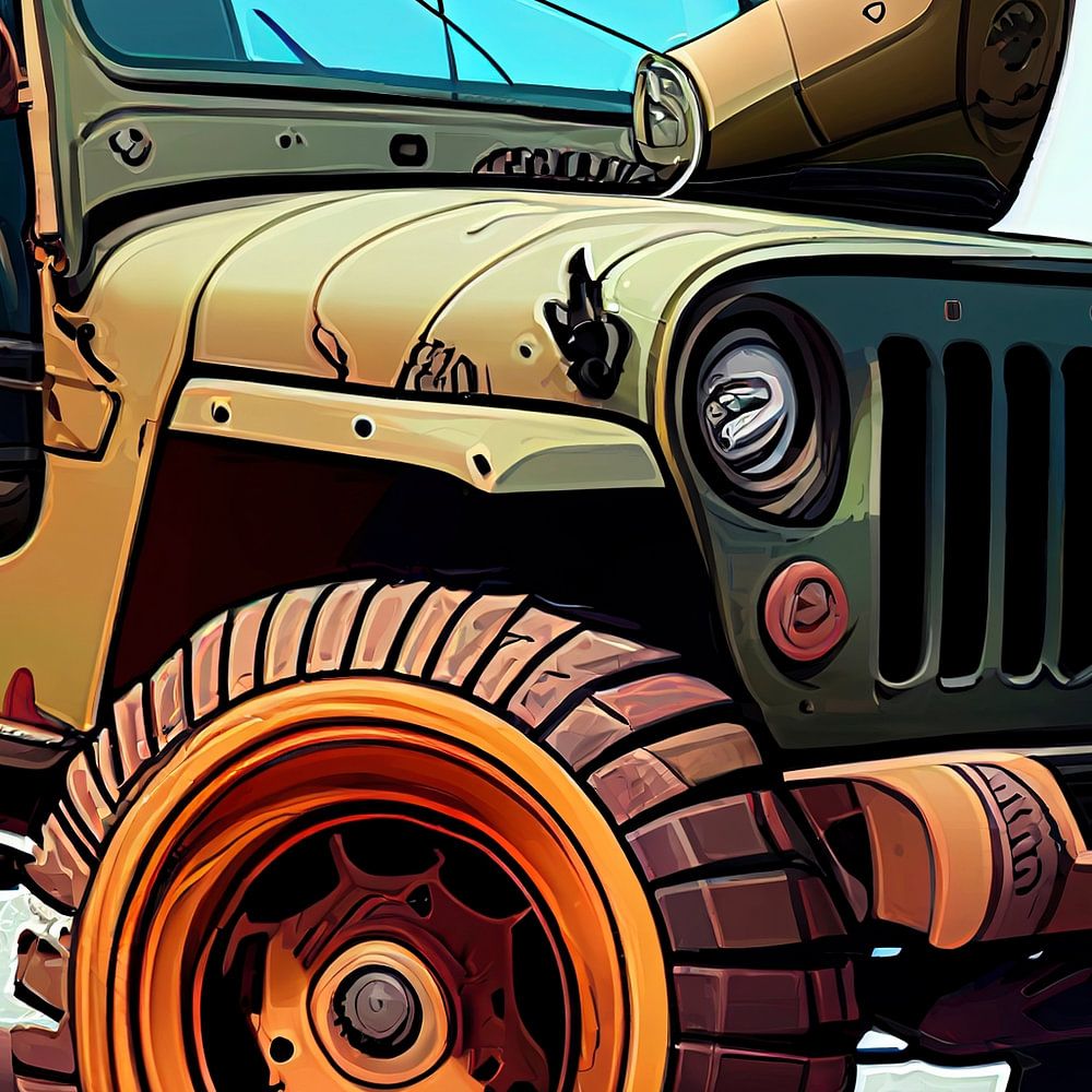 Buy this digital art artwork Army car in green by Harvey Hicks as a reproduction on canvas, ArtFrame, poster and wallpaper, printed on demand in high quality.