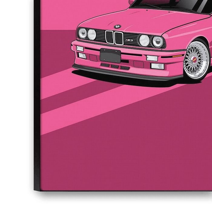 Buy this illustration Art Car BMW E30 M3 pink by D.Crativeart on canvas, ArtFrame, poster and wallpaper, printed on demand in high quality.