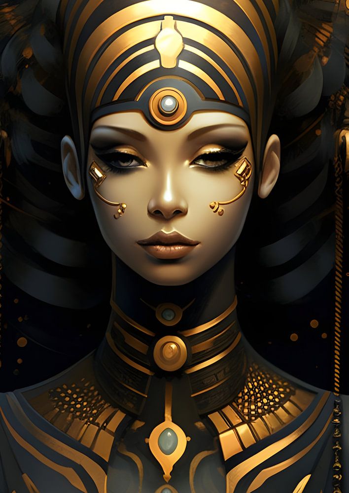 Buy this art deco artwork Art Deco black and gold Egyptian princess by Jan Bechtum on canvas, ArtFrame, poster and wallpaper, printed on demand in high quality.